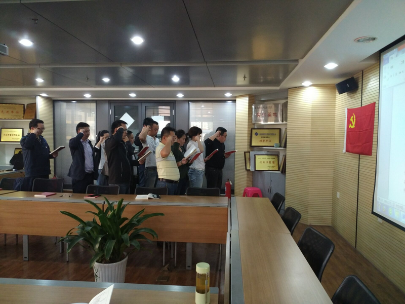 會議伊始,全體黨員在黨支部書記陳建濤同志的帶領(lǐng)下,由黨支部委員丁劍輝同志領(lǐng)誓,全體黨員重溫入黨誓詞,黨員們面對黨旗,舉起右手,莊嚴宣誓: 我志愿加入中國共產(chǎn)黨,擁護黨的綱領(lǐng),遵守黨的章程,履行黨員義務(wù),執(zhí)行黨的決定,嚴守黨的紀律,保守黨的秘密,對黨忠誠,積極工作,為共產(chǎn)主義奮斗終身,隨時準備為黨和人民犧牲一切,永不叛黨。