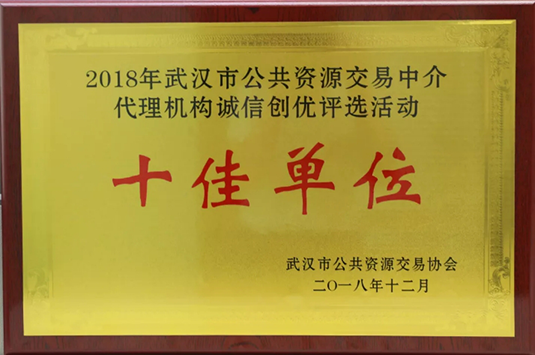 ——熱烈祝賀東方華太公司榮獲“武漢市2018年度公共資源交易中介代理機(jī)構(gòu)誠信創(chuàng)優(yōu)十佳單位”稱號(hào)